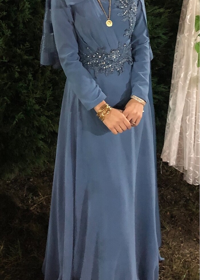 Bir kez giyildi. İki tarafında Omuzdan uzun parçalı. Tek tarafında parçası görünmüyor şalımla beraber boynuna atmışım farkında olmadan