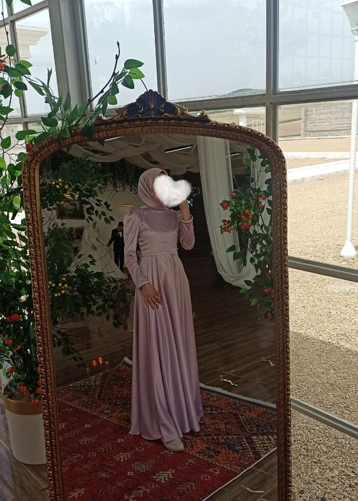 abiye üzerinde değişiklik yaptım . Son görselde ilk hali mevcuttur. Eşarbıyla birlikte satılmaktadır. çok tatlı bi rengi var .