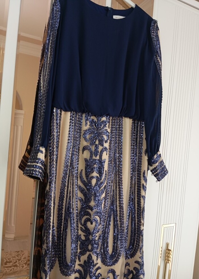 Çok az kullanıldı, defosunu belirttim alt kısmı yırtıldı elbısenın boyu gayet uzun tadilat edilebilir..