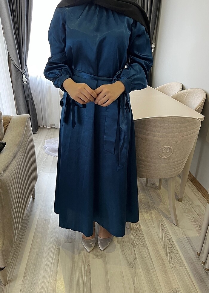 1kez giyildi. Hasarı yok. Standart beden.Saten elbise