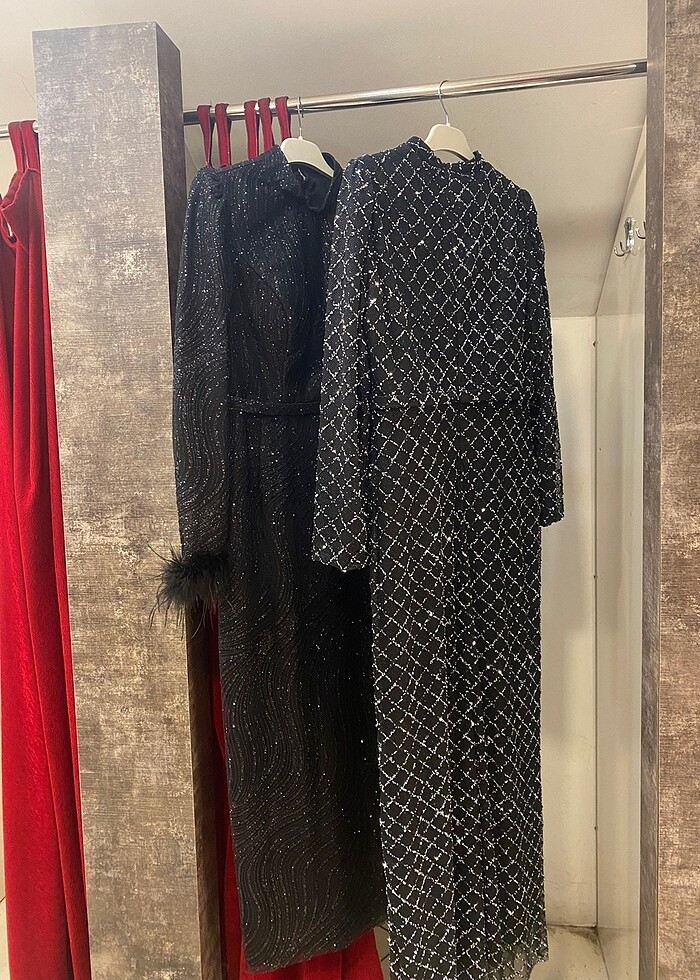 Tesettür Abiye Resimde ilk gözüken elbise. Siyah parıltılı ve hiç giyilmedi. 40 Beden. Pazarlık olabilir.