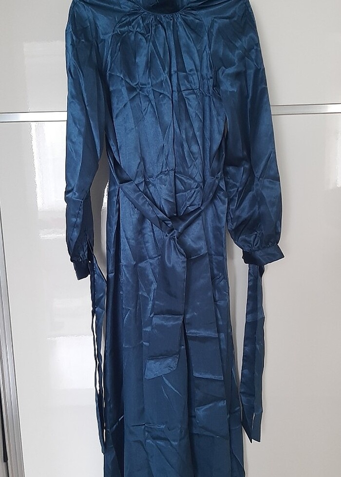 Bedeni standart beden ama kuşağı olduğu için çoğu bedene uyar. Kolunda ufak bir delik var onun dışında yepyeni