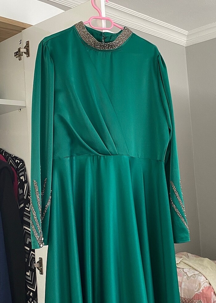Zümrüt yeşili,bir kez giyildi 42 beden.
