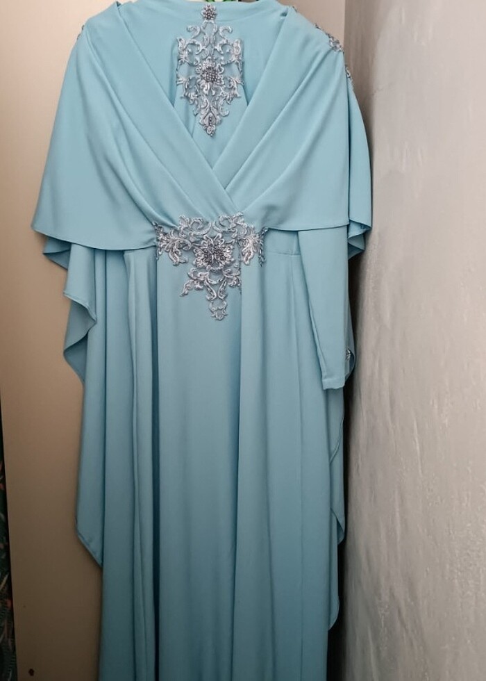 Bir kere kullanıldı arkasında pelerini vardır çok şık çok güzel bir abiye tasarım Gönül Kolat a aittir 40 beden yazıyor ama 38 bedene de olur Alan kişiye şimdiden hayırlı olsun