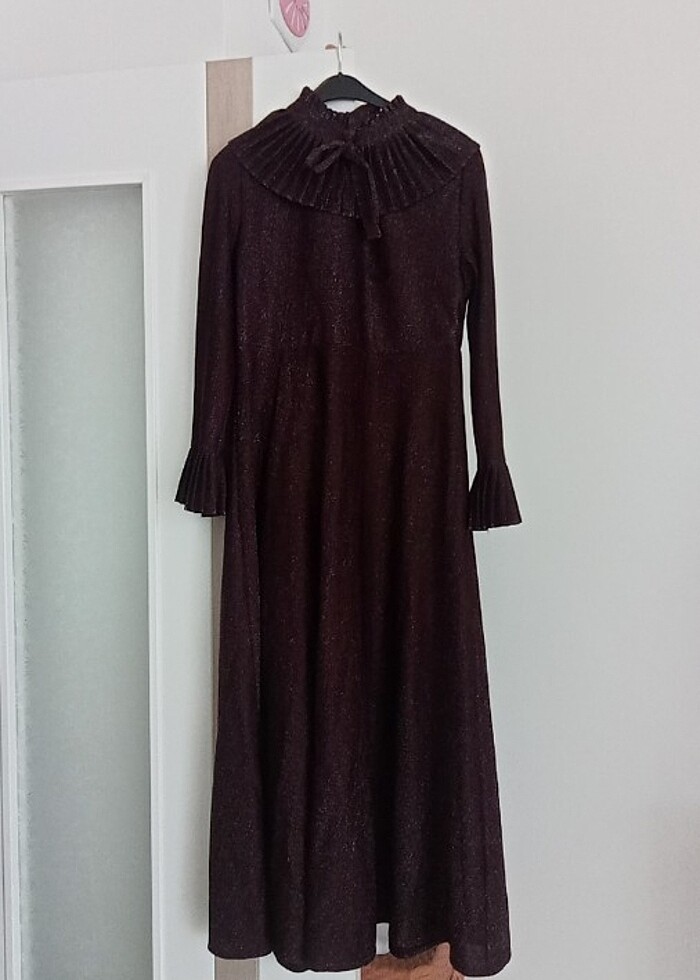 Bordo simli bir elbisedir sadece bir kez giyilmiştir yepyenidir