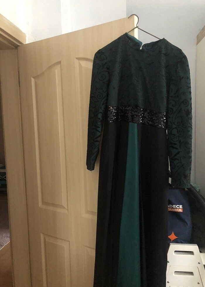 Büyük beden temiz bir kusuru yok uzun siyah tüllü iç astarı yeşil