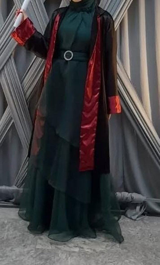 Zümrüt yeşili, kendinden hafif ışıltılı, 38 beden, kemerli ve sadece 2 kez giyilmiştir. Kına, nişan, düğün ve mezuniyetlerinizde rahatça tercih edebilirsiniz.