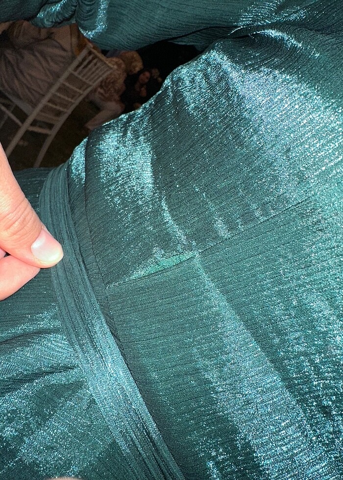 Küçük bir defosu varmış alırken fark etmemiştim yakınımın düğününe giyindim o yüzden satmak istiyorum Şalı ile beraber göndereceğim şal istemezseniz fiyatı düşürürüm 169-94 kiloyum