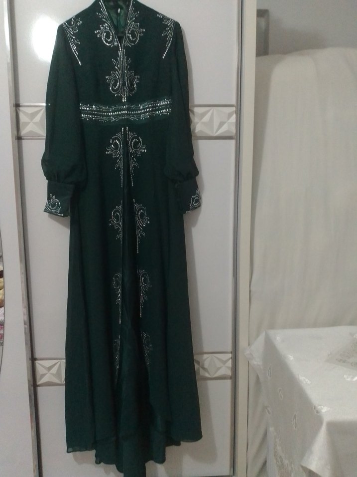40 beden zümrüt yeşili abiye.