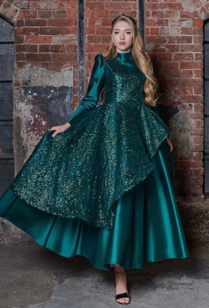 Uzun kollu, parlak detaylı, yeşil tesettür abiye. Özel günler için şık bir seçim. Ürün etiketli ve sıfırdır. Tafta saten kumaştır. Zümrüt yeşil renk, ön etek payetlidir. Kıyafet boy 1.40 cm’dir. 36 bedendir. Manken ölçüleri: Boy/ 1.65- Kğ/50 Kıyafet birebir aynıdır. Lütfen ciddi alıcılar yazsın. Ürün yeni ve sıfır olduğu için alındıktan sonra iptal iade kabul etmiyorum..