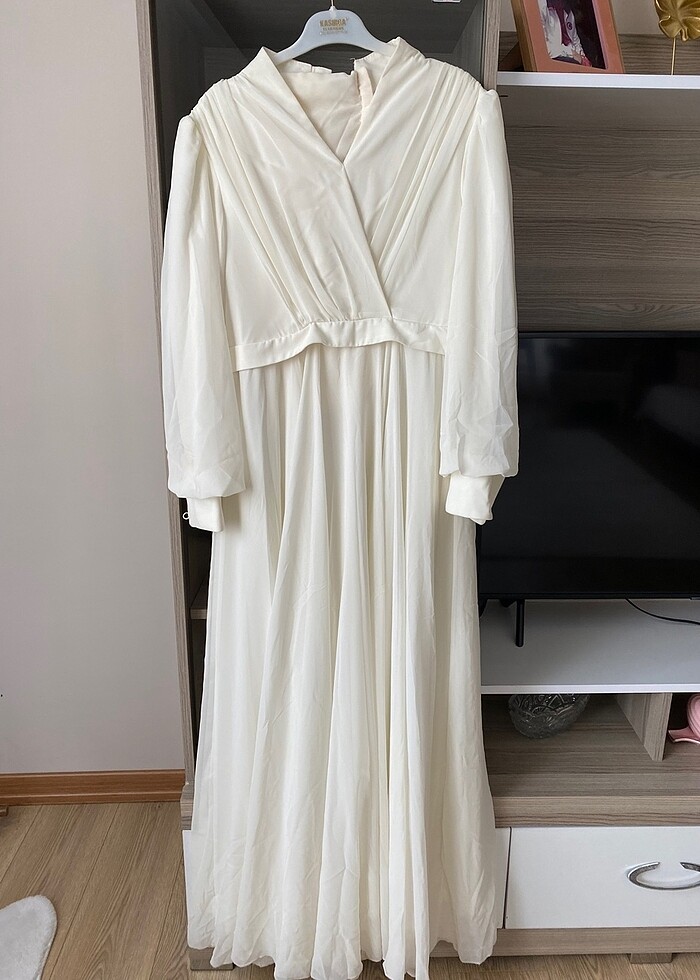 Kırık beyazdır Boyu 150 cm İki kol arası 47 cm Kol boyu 60 cm