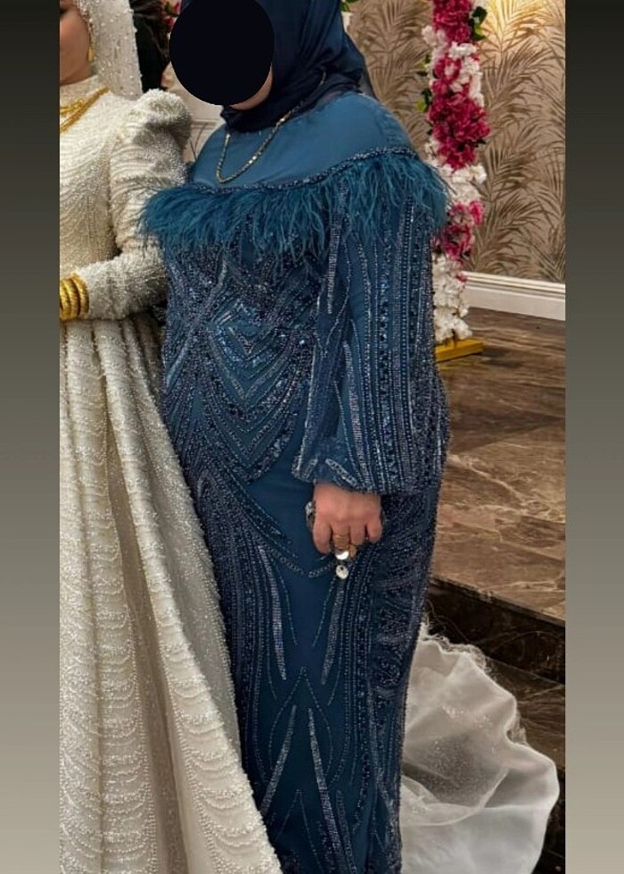 Petrol mavisi tasarim abiye , sadece bir kez giyildi 48-50-52 beden uyumlu .(98 kg -165 boy ve 12cm topuklu ile görseldeki gibi duruyor)