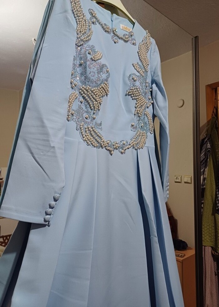 Tertemiz bebe mavisi 1 kez giyildi şalı da var