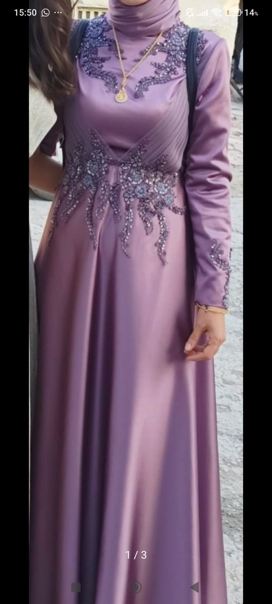38 beden uyumlu lila abiye bir kere giyildi tertemiz