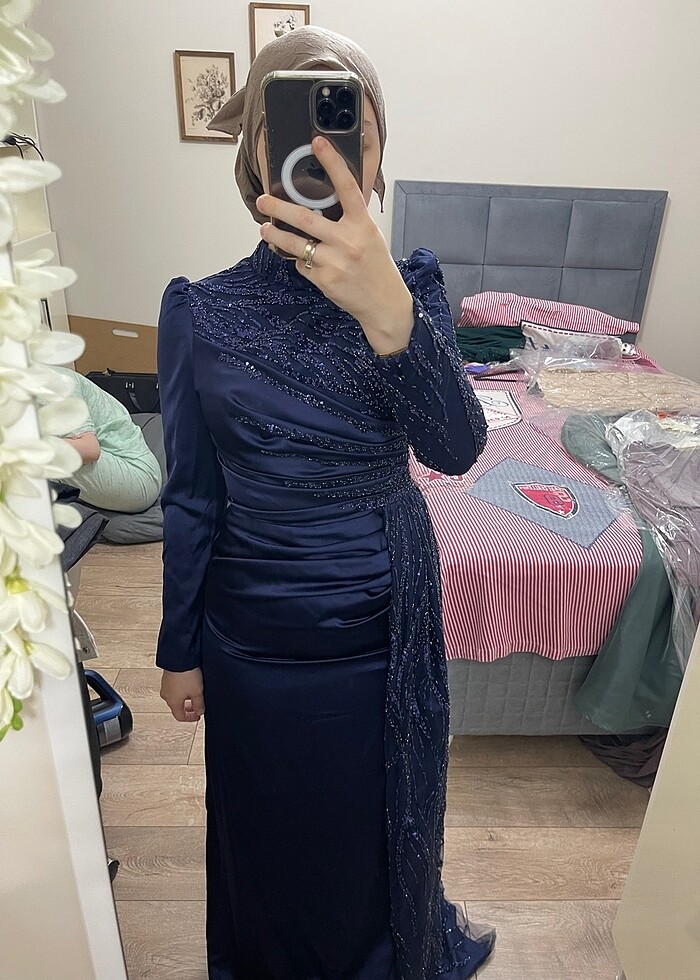 38 40 beden taşlı şık tesettür abiye M L uyumlu