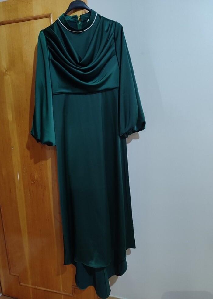 Sadece bir iki saat giyildi kusursuz sıfırdan farksız zümrüt yeşili renginde arkası uzun abiye