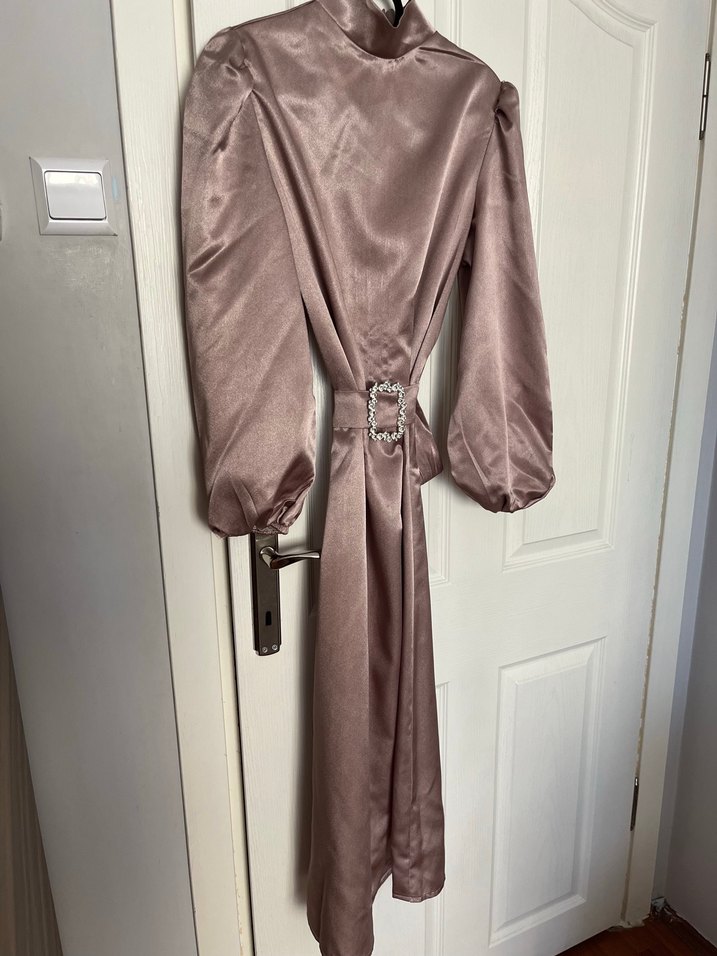Tesettür abiye iki kere giydim kemer taş olduğu için takılıyor abiyeye fotoğrafta da gözüküyor zaten şalla beraber. Boyu 1.35 cm