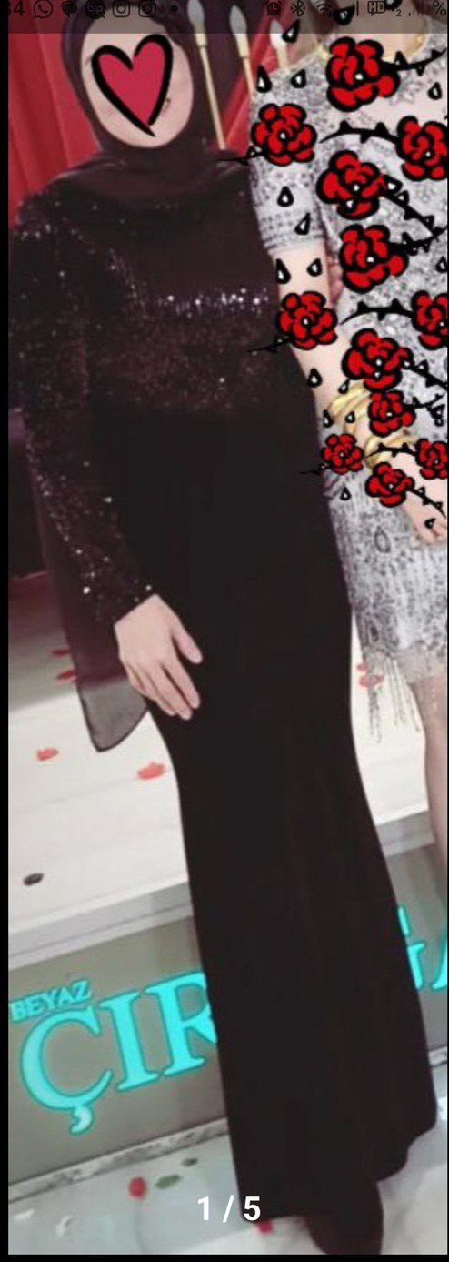 Uzun kollu, yüksek yakalı, pul payet işlemeli ve parlak detaylı siyah kadife, balık kesim uzun abiye,bahar ve kış düğünleri için uygun.
