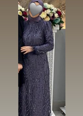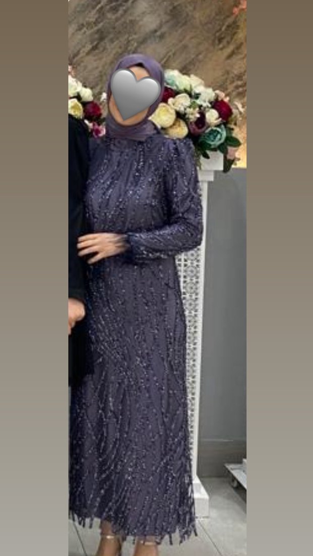 Mor renkli, payet ve nakış detaylı, uzun kollu gece elbisesi. Etek ve kol uçlarında tüy detayları bulunur. ✨(şal içine dahildir)