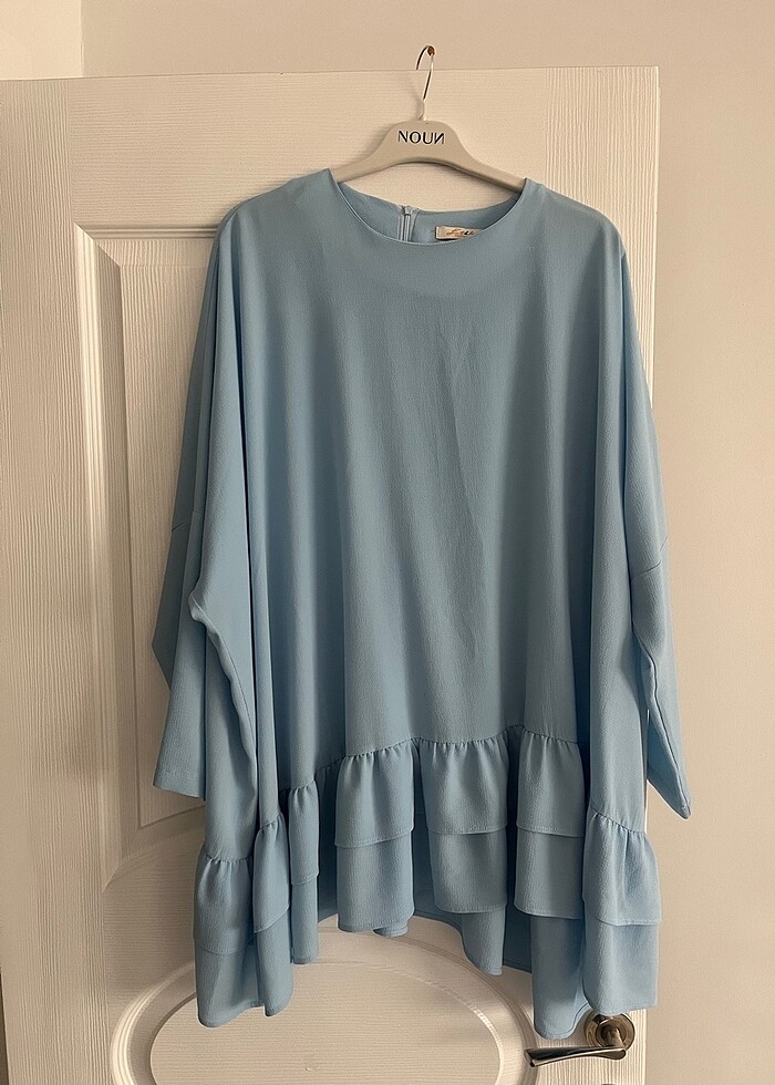 Bebe mavisi yarasa kol rahat bir bluz önünde çok ufak bir kalem lekesi var görseli mevcut rengi daha canlı ve tatlı 38 beden ama 40 be 42ye de olabileceğini düşünüyorum #tesettür #tesettürbluz