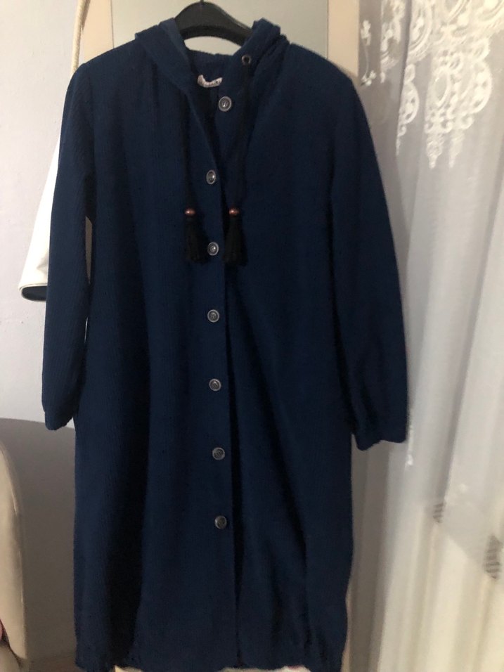 Ürünün kumaşı kadifedir. Kumaşı fitilli ve çizgili desendir. Kışlık üründür ve çok az kullanıldı. Yepyeni. Kalıbı çok geniş olup 44 46 bedene kadar uyumludur