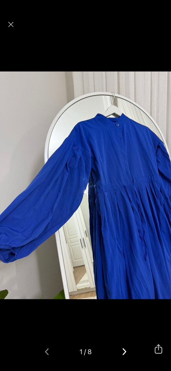 2 kez giyildi. Deformesiz. Boy 130- en 45. Belden bağcıklı. 1 beden 36-38-40 beden uyumlu. Lacivert parlament mavisi arası bir rengi var.