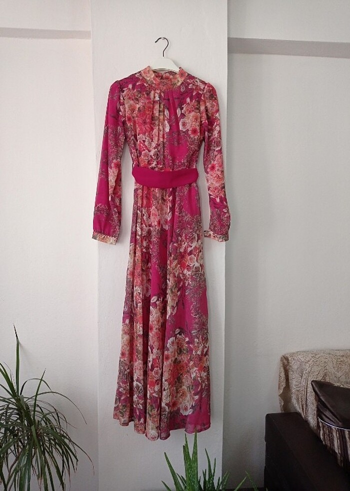 Tesettür çicekli elbise bir defa giyilmiştir onun haricinde kullanılmamıştır yeni gibidir m bedendir