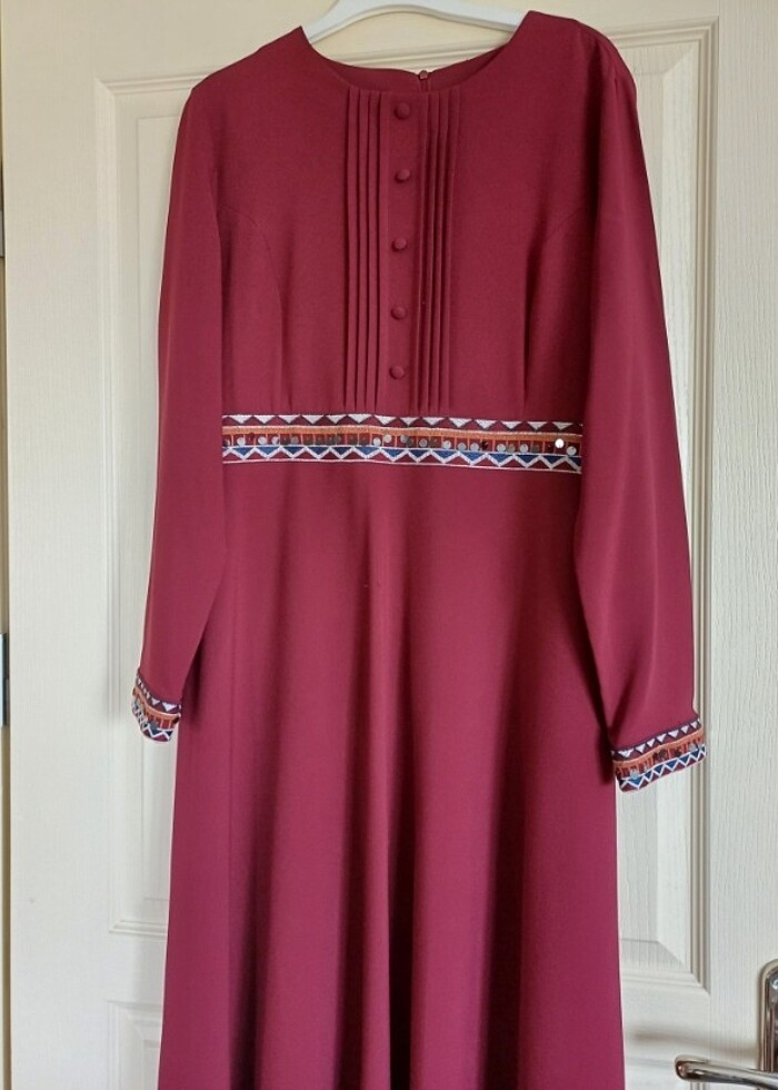 Uzunluğu 1.50 Beden 48. Rengi bordo çekimlerden dolayı farklı yansımıştır.Moda Selvimden almıştım. Birkaç kez giyildi.