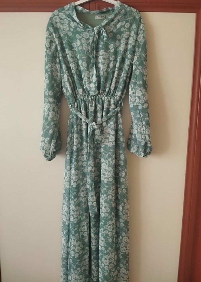 Şifon elbise astarlı çağla yeşili tadında bir rengi var sadece 2 veya 3 kere giyildi temiz