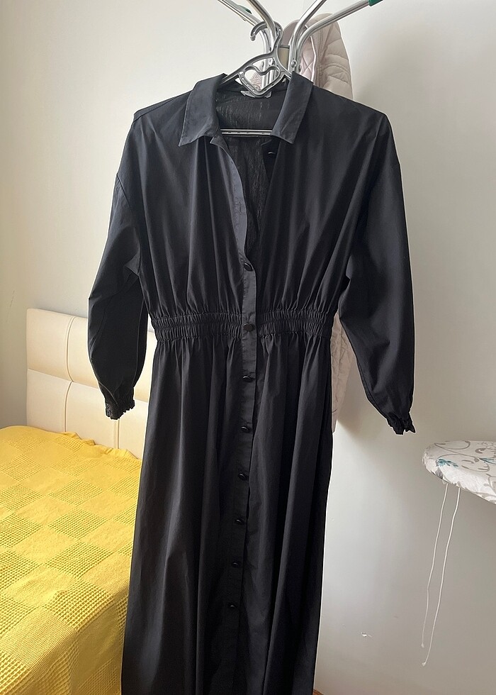 Zeynep şule 1 beden beli lastikli siyah elbise Bir kusuru yok