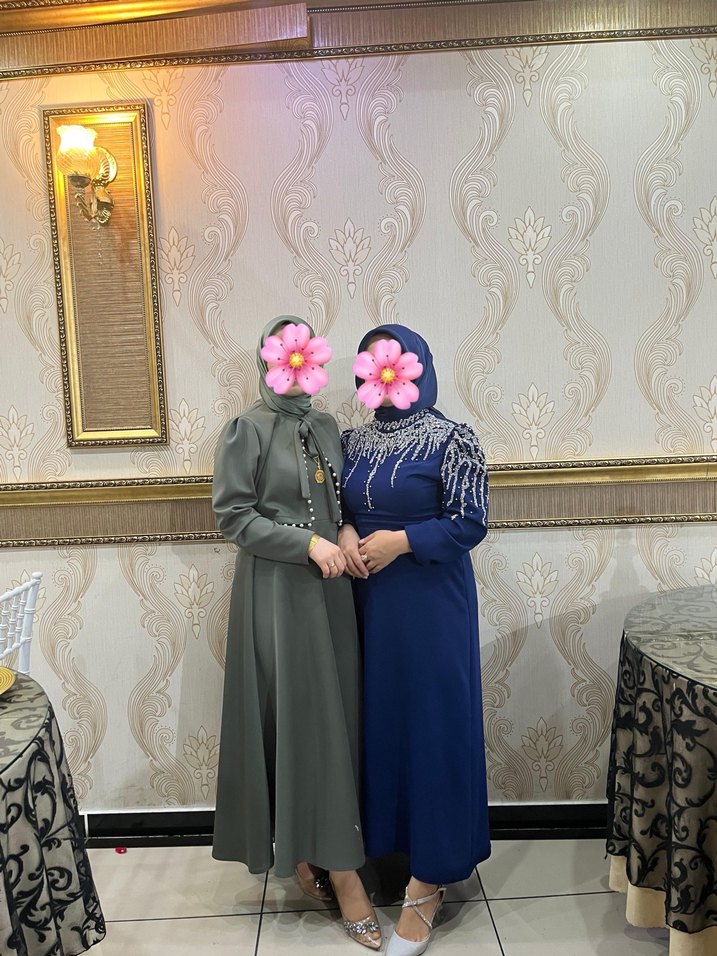 Bu dar kesim uzun abiye elbise, yüksek yakalı ve uzun kollu olup etnik desen ve drapeli detaylara sahiptir satılıktır