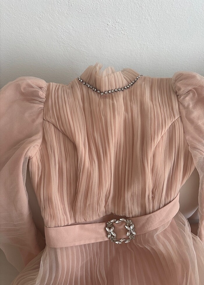 2 kez giydim sağ alta doğru tülü biraz yırtıldı son görsele ekledim rengi somon yada pudra pembesi ayırt edemedim ama somon gibi