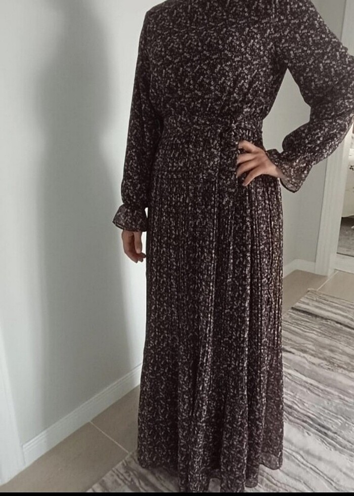 Elbisenin hiç bir kusuru yok kaliteli pileli çiçek desenli