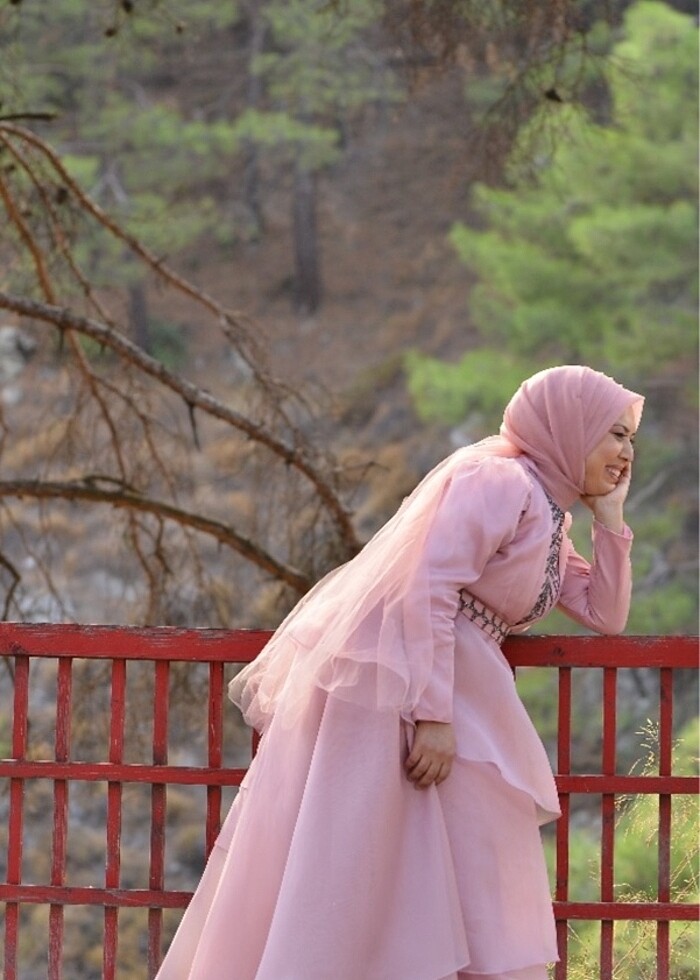 Annem 1 kez sünnet düğünümüzde giydi elbiseyi kaldırdığımız için buruş buruş duruyor o yüzden albümden fotoğraflar ekledim. Rengi pudradır