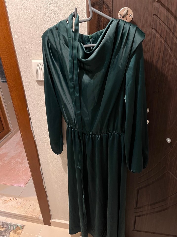 Tesettür elbise Uzun Drapeli Yeşil Kadın Elbise
