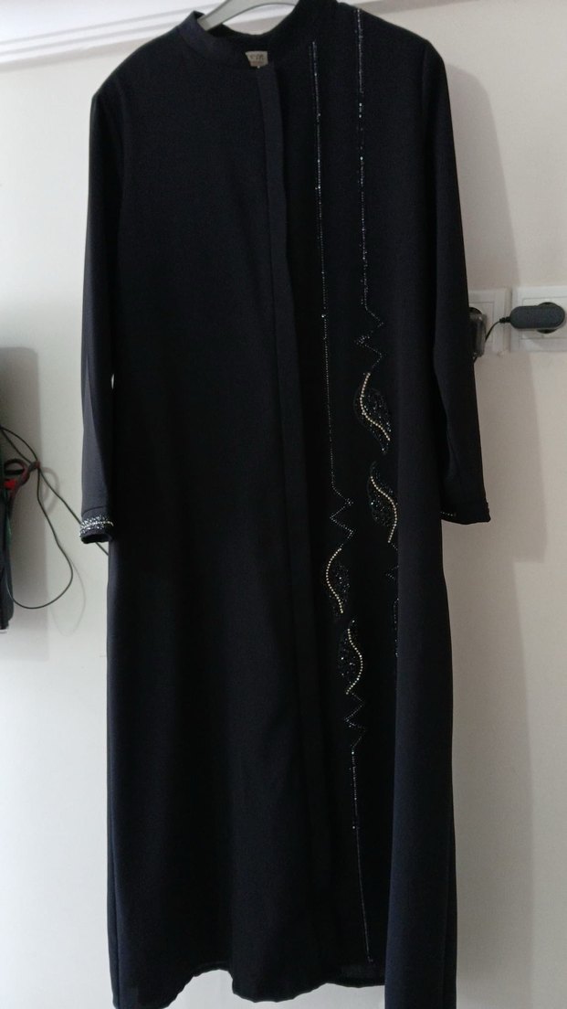 Nakışlı detaylara sahip, yakalı ve uzun kollu siyah uzun elbise. Drapeli önü ve rahat kesimiyle günlük gotik stile uygundur.