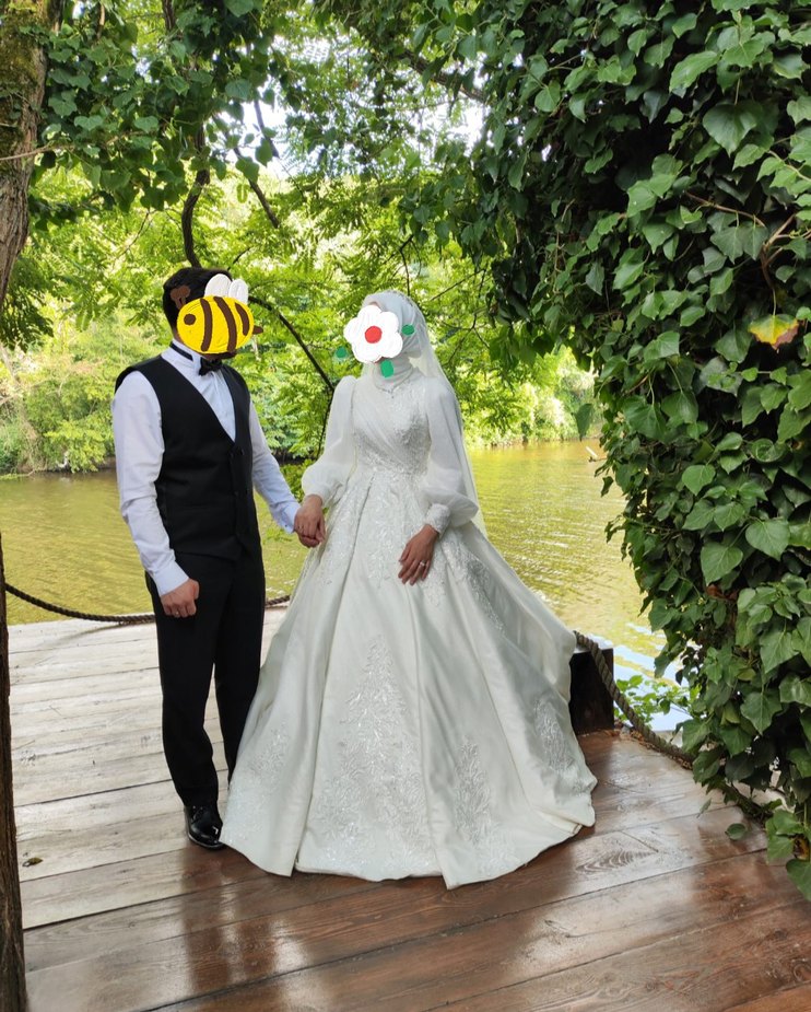 38-40 beden uyumlu Duvak ile birlikte gonderilecektir Boyum 1.75 kilom 61 Eşim benden çok uzun olmadığı için altına topuklu ayakkabı giymedim