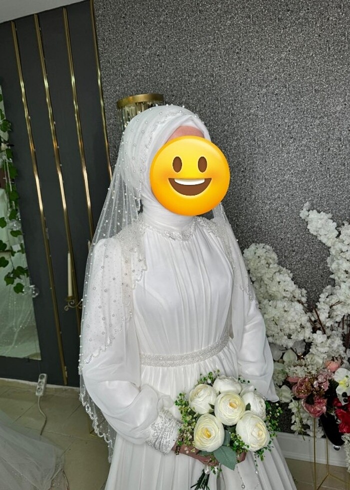 1 kere nikah ve fotoğraf çekiminde kullanıldı arkası ipli ayarlanabilir 36-38 beden arası olur özel dikimdir duvağıda özel dikimdir tarlatansız kuru temizleme yapılıp teslim edilecektir pazarlık payı vardır şimdiden alana hayırlı olsun