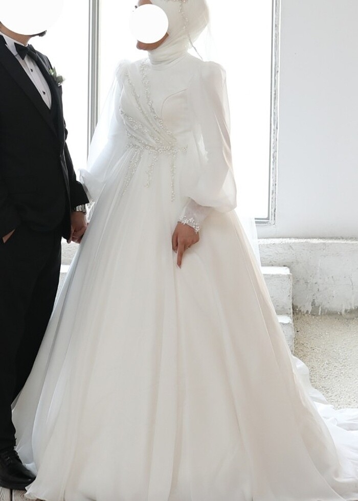 Özel dikim 55 kg 38 bedendir. 1.60 boy görsellerde 10 cm topuklu ile kullanıldı. Sırtında inci düğmeler var. Kasnak tak çıkar şeklindedir. isterseniz kasnaksızda giyebilirsiniz. Duvağı ile birlikte verilecektir. Ankara içi elden teslim