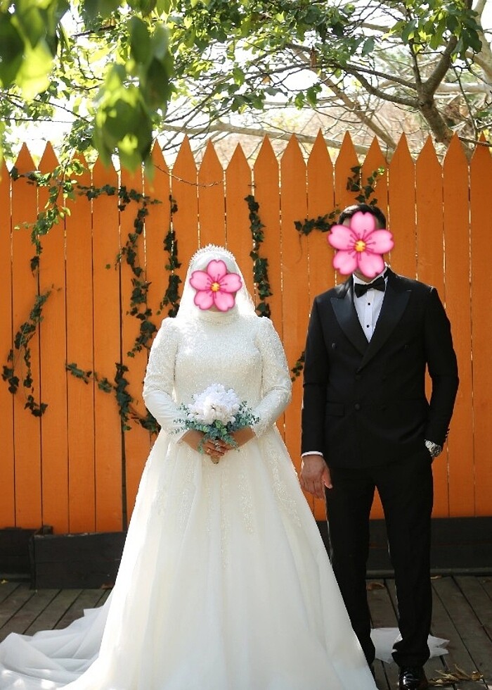 Süleyman Güvenç Özel tasarimdir. 44 52 beden uyumludur. Gizli ipli korsesi vardir.Aynı işlemeden Tasarim Rahibe Duvak dahildir.