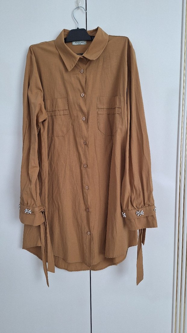 Tesettür için uygundur gömlek veya tunik olarak kullanılabilir 1-2 kez snca giydim herhangi bir sorunu yok, uzunluğu 85 cm iki koltuk arası 56 cm dir.