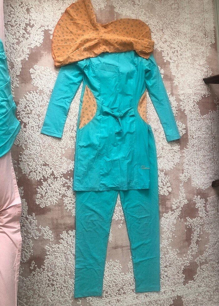 Turkuaz renk m beden tesettür haşema başlığı mevcut
