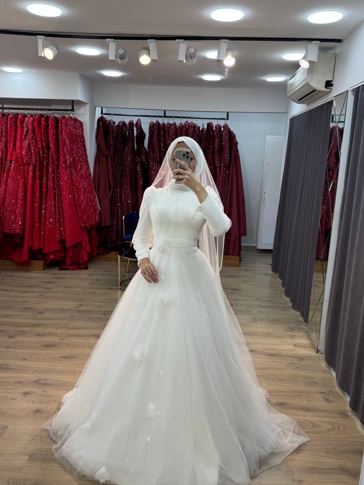 Özel gününüze eşlik edecek Tesettür Helen Gelinlik