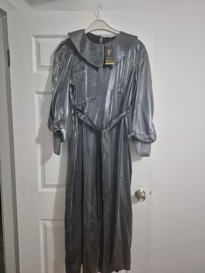 sıfır etıketlı fotoğraftan ustte daha guzel duruyor kalıbı rahat 85 kıloyla denendi guzel oldu parlak saten kumas altında tullu astarı vardır utulenmesı gerek