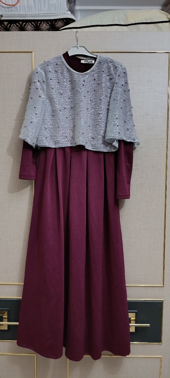 uzun kollu iç elbisesiyle dış pelerini ayrı kullanabilirsiniz ufak bi çekik ve sadece iki kere giydim