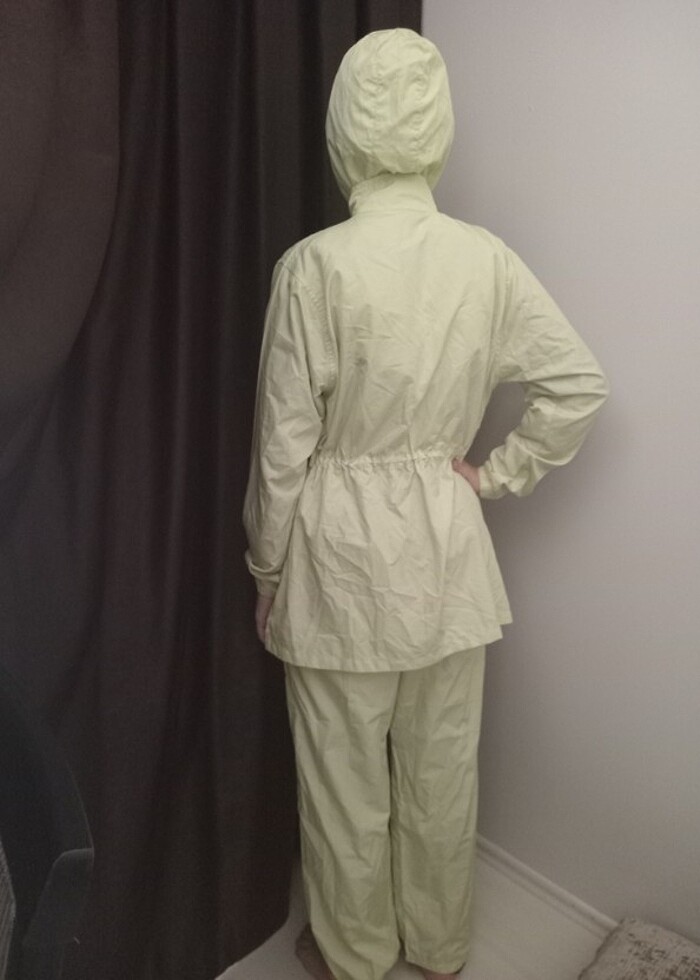 RANUNA MARKA S BEDEN TESETTÜR HAŞEMA Açık Fıstık yeşili renginde fotoğraflarda daha açık renkli görünüyor. kolu ve paçası lastikli alt, üst, bone ve başörtü olmak üzere 4lü takım. Kumaşı su tutmuyor ve çabuk kuruyor. 36 ve 38 bedene uyumludur Temiz ve yeni gibi sayılı kullanıldı Huzur mağazasından alındı. Şık tasarımıyla alıcısına hayırlı olsun.