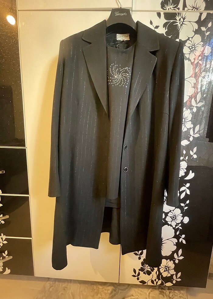 Takım üç parçadan oluşuyor.Sıfır kol taşlı içlik,kapalı yırtmaç kalem etek ve ceket.İade kabul etmiyoruz.