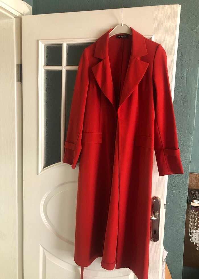 Çok severek alıp kilo alınca çok kullanamadığım bir ürün koyu kırmızıdır resimler sizi yanıltmasın. Belden kemerli kol kısımları zımbalı fakat sağ kolundaki zımba düşmüş. Başka bir problemi yoktur