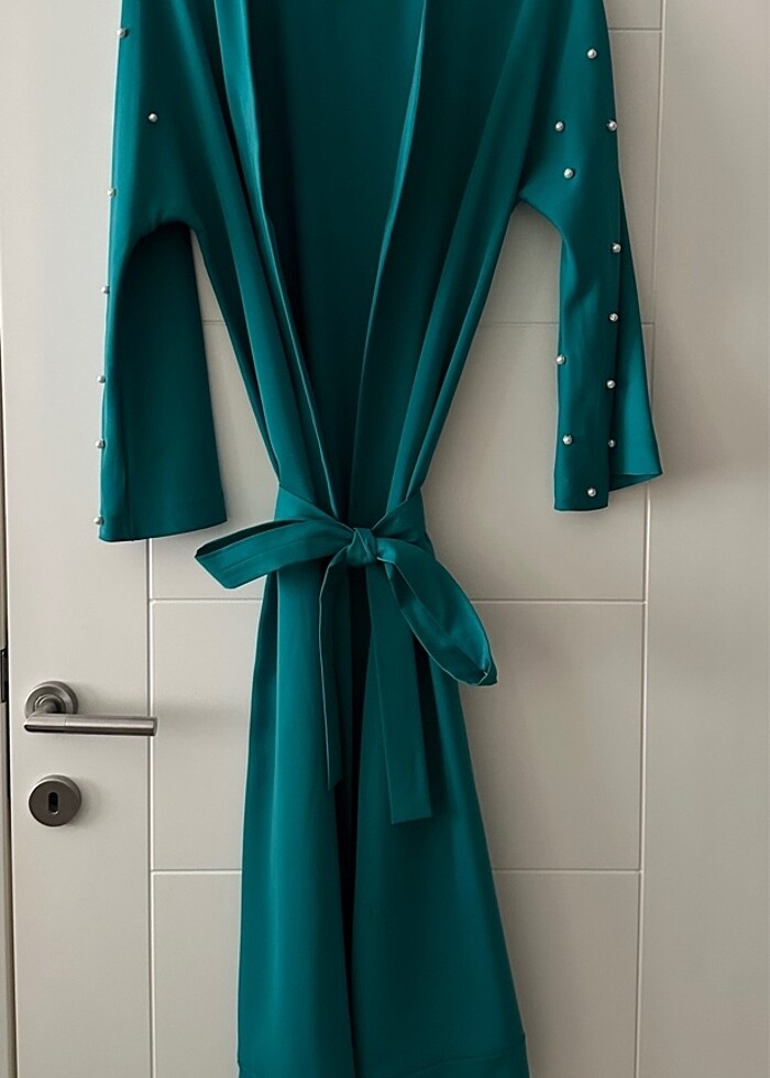 Tertemiz. Bir kaç kez özel davetlerde giyilmiştir. bir tesettür mağazasından alınmış olup çok kaliteli bir krep kumaşa sahiptir. Kuşaklıdır. 36 beden iken giyilmiştir fakat 42 bedene kadar rahatlıkla olur.