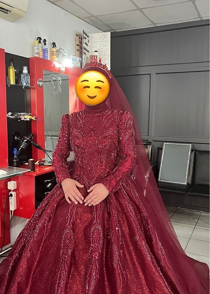 Tesettür kına giriş elbisesi veya nişanlık 38 beden bordo renk
